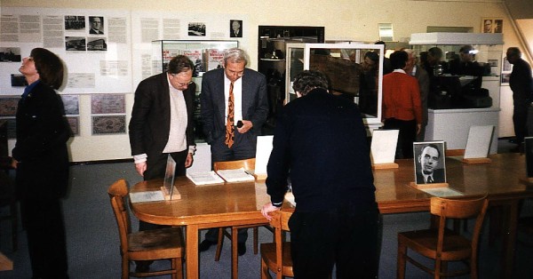In der Ausstellung "Währungsreform 1948" Prof. Dr. Dirk Löhr (l) und Dipl.-Pol. Christian Böttcher (r)